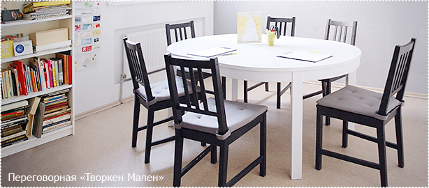 Студия маркетинга и дизайна «Творкен Мален» готовит правильные переговорные комнаты, соответствующие вашему фирменному стилю и вашей стратегии продаж.